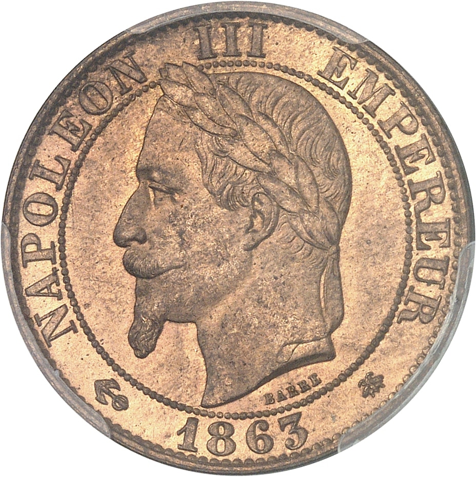 - Second Empire / Napoléon III (1852-1870). Cinq centimes tête laurée 1863, A, Paris.