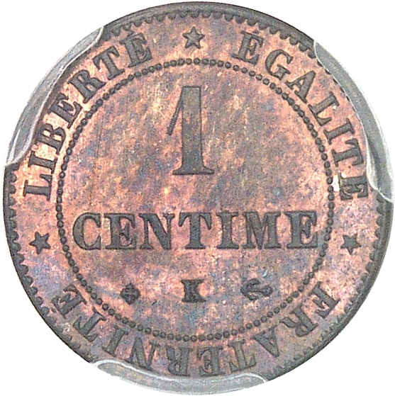 Rv. LIBERTE* EGALITE* FRATERNITE*. Au centre : 1 CENTIME (différent) (atelier) (différent).