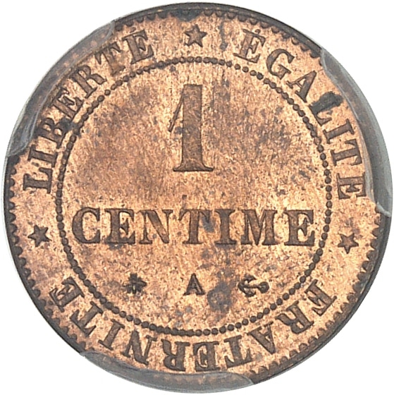 Rv. LIBERTE* EGALITE* FRATERNITE*. Au centre : 1 CENTIME (différent) (atelier) (différent).