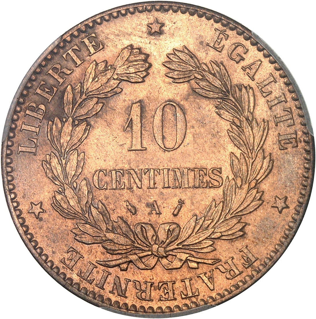 Rv. LIBERTÉ. ÉGALITÉ. FRATERNITÉ. Dans une couronne formée de deux branches, sous une étoile : 10 CENTIMES (différent) (atelier) (différent).