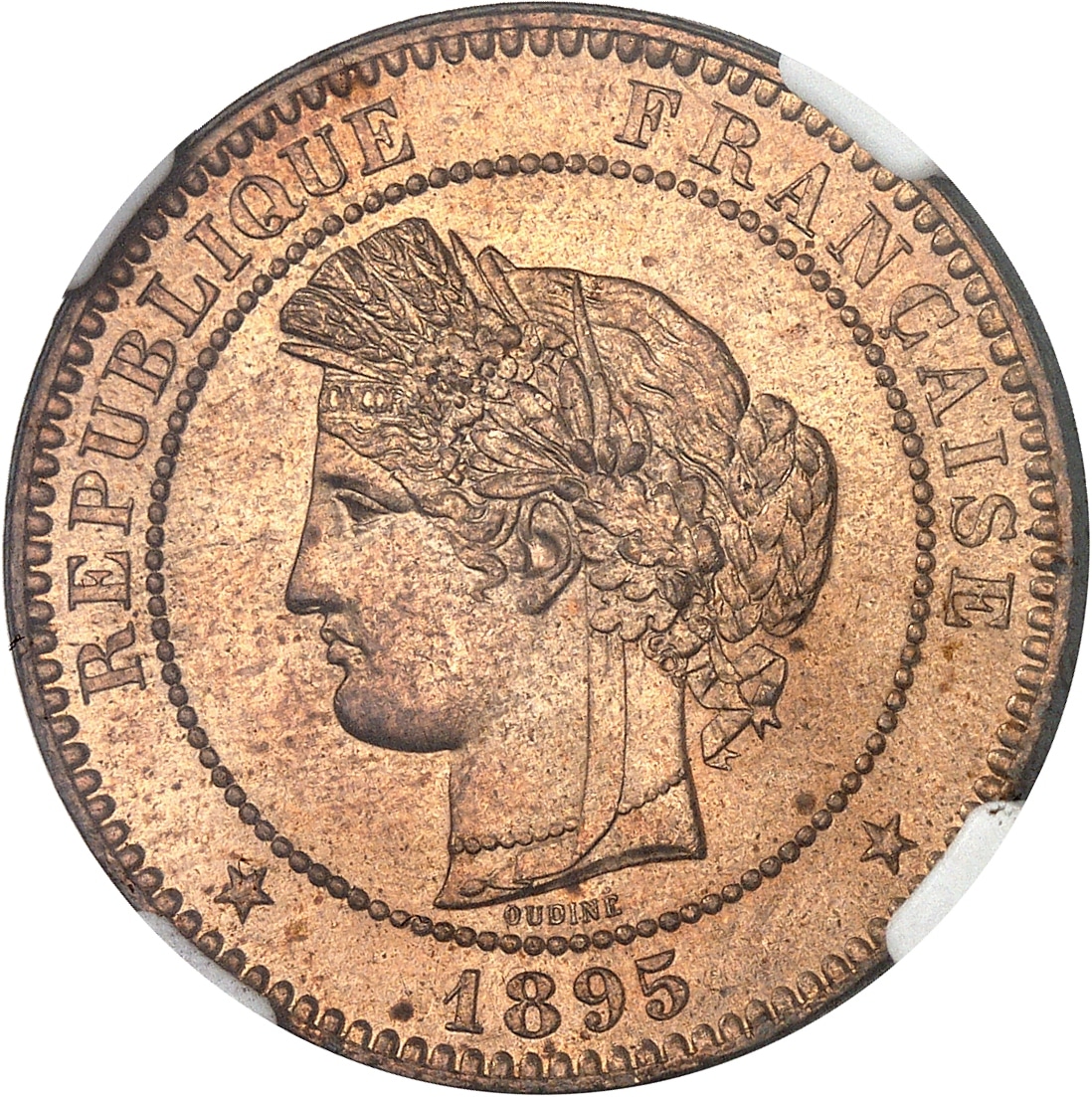 Av. RÉPUBLIQUE FRANÇAISE (date). Tête de la République à gauche en Cérès, au-dessous signature OUDINÉ.