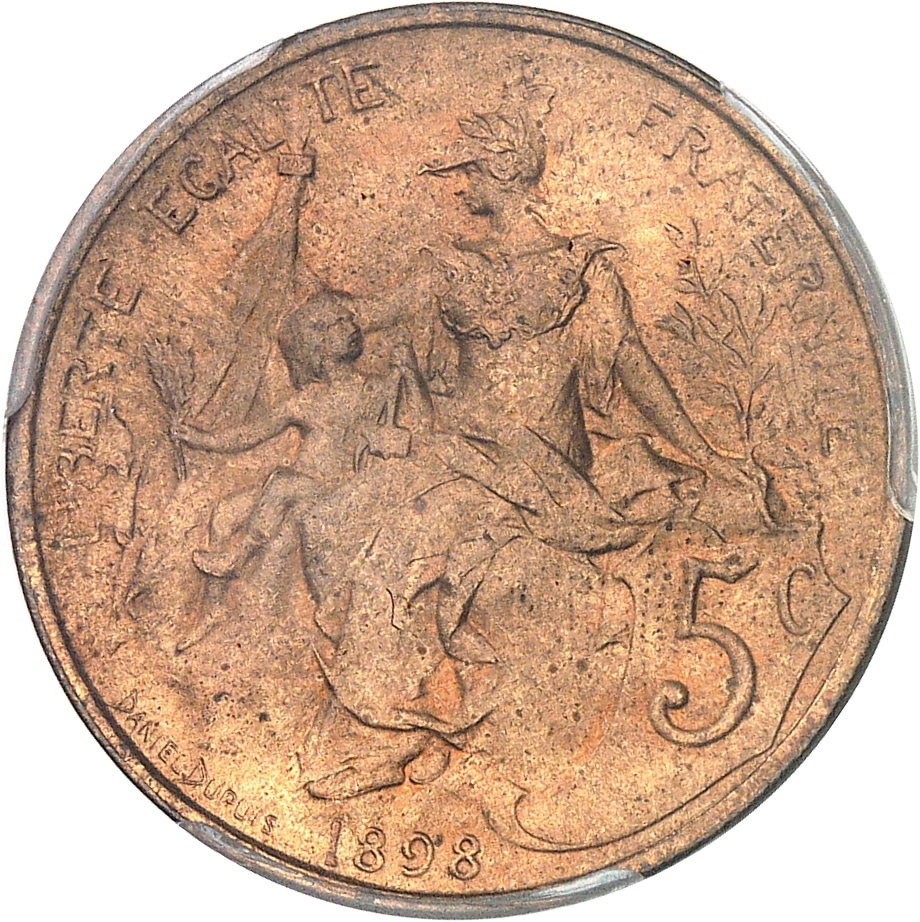 - IIIe République (1870-1940). 5 centimes Daniel-Dupuis 1898, Paris.