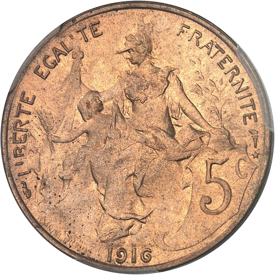 - IIIe République (1870-1940). 5 centimes Daniel-Dupuis 1916, Paris.