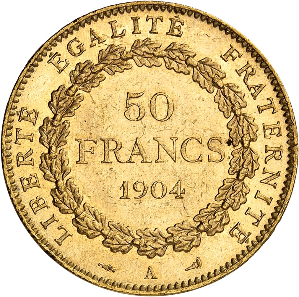 - IIIe République (1870-1940). 50 francs Génie 1904, A, Paris.