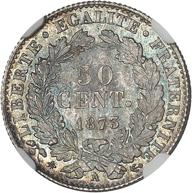 - IIIe République (1870-1940). 50 centimes Cérès 1873, A, Paris.