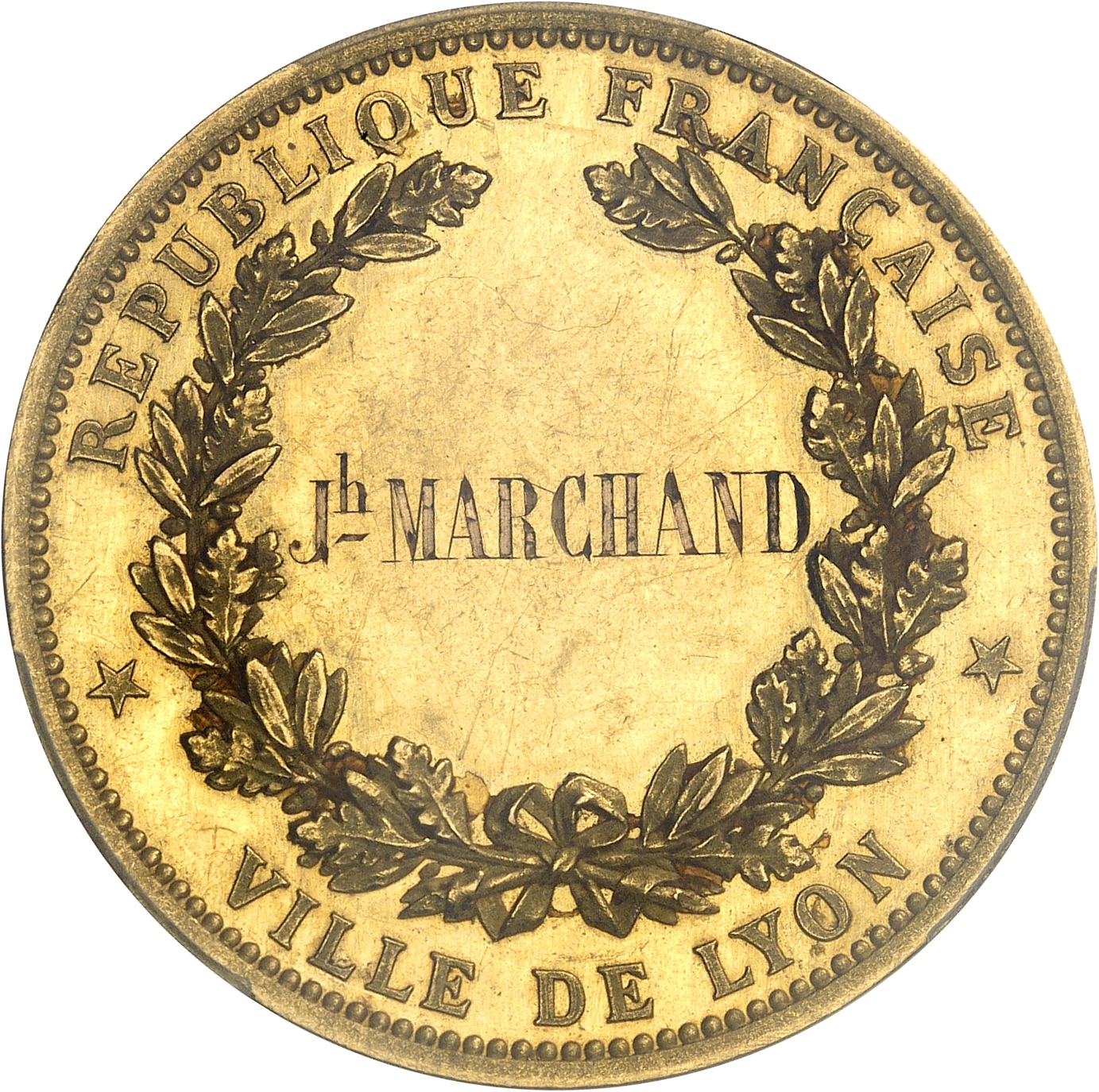 - IIIe République (1870-1940). Médaille d’or, Exposition universelle de Lyon, Frappe spéciale (SP) 1872, Lyon.