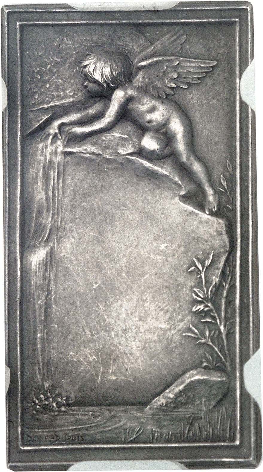 Rv. Un cupidon grimpé sur un rocher duquel coule une source ; au-dessous signature DANIEL-DUPUIS.