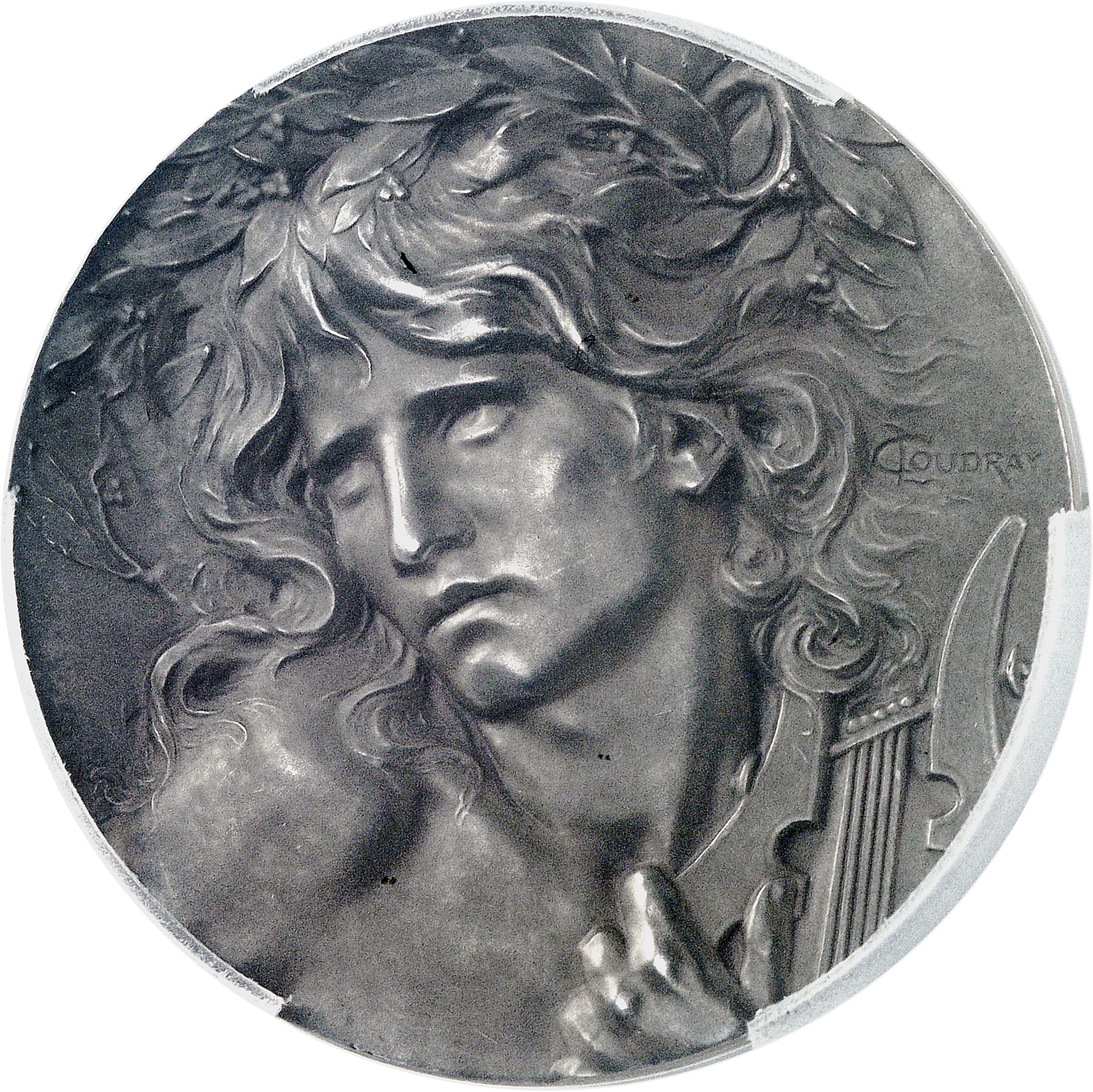Cette médaille est la plus célèbre de Marie-Alexandre-Lucien Coudray (1864-1932) qui la réalisa probablement lors de son séjour à la Villa Médicis et en céda les droits à la Monnaie de Paris en 1899. Elle fut vendue à plus de 4500 exemplaires lors de l’Exposition universelle de 1900 à Paris * Following Council Directive (EU) 2022/542 of April 5, 2022, implemented in national law from 01/01/2025, buyers from within the EU have to pay 5.5% VAT on the hammer price of this lot. * Suite à la Directive (UE) 2022/542 du Conseil du 5 avril 2022, mise en application dans le droit national à compter du 01/01/2025, l’adjudicataire européen devra également payer une TVA de 5,5% sur ce lot