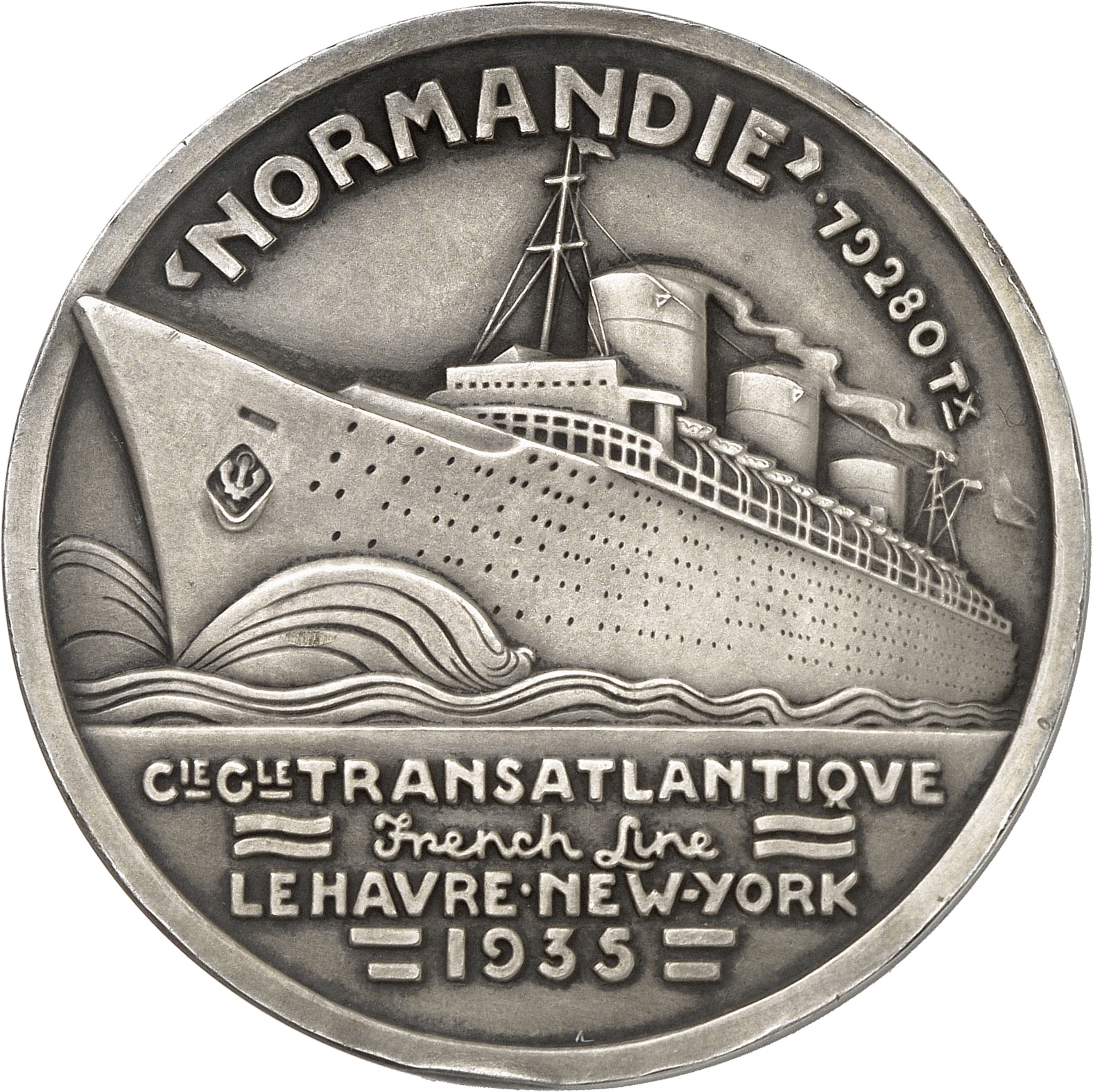 - IIIe République (1870-1940). Médaille, le Paquebot Normandie, par J. Vernon 1935, Paris.