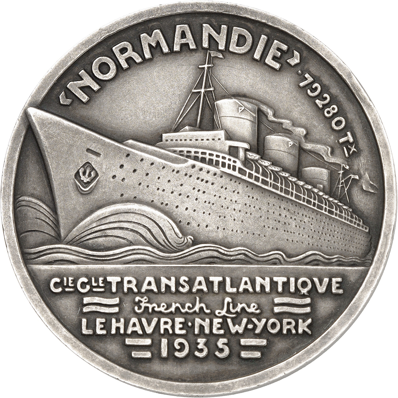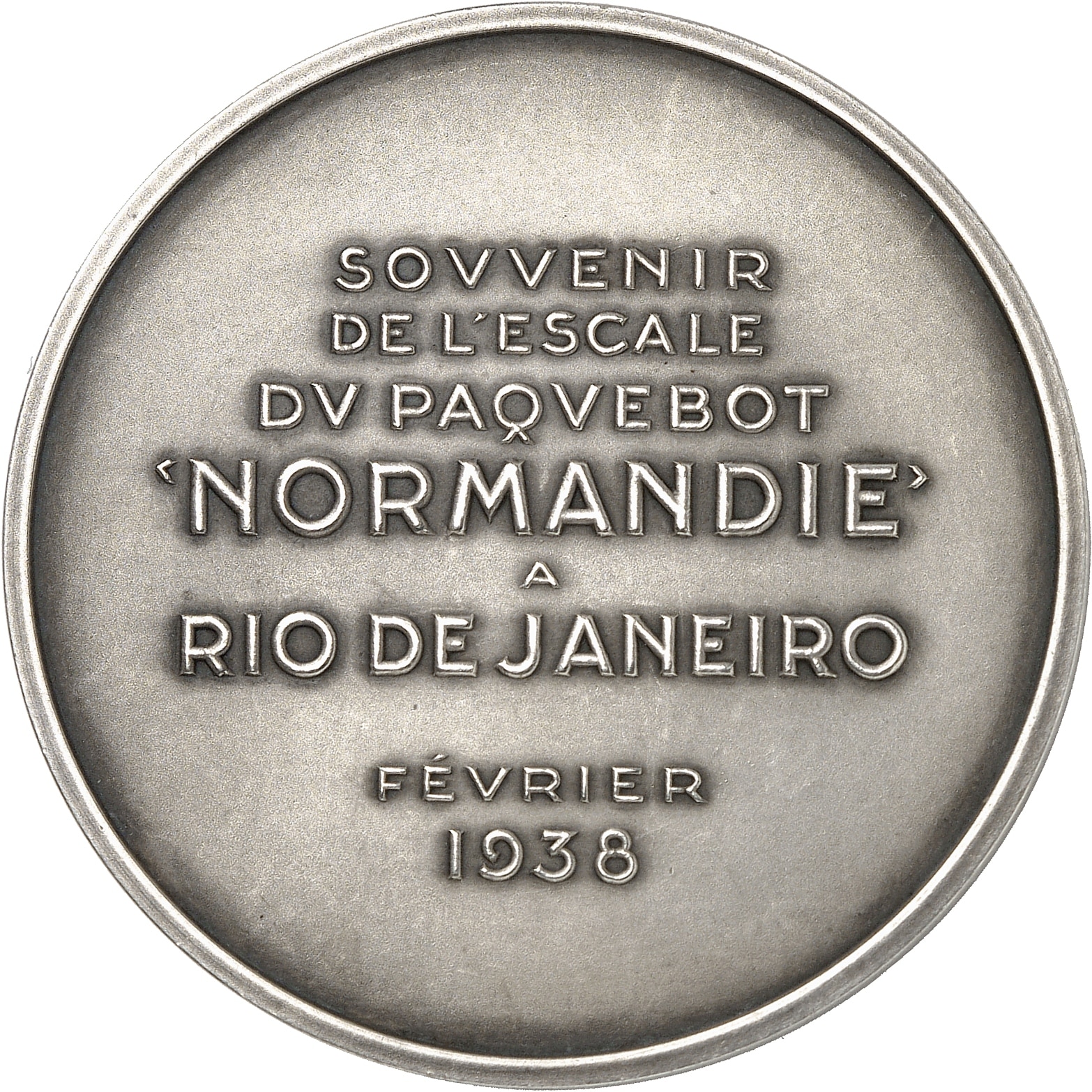 - IIIe République (1870-1940). Médaille, escale du Paquebot Normandie à Rio de Janeiro, par J. Vernon 1938, Paris.
