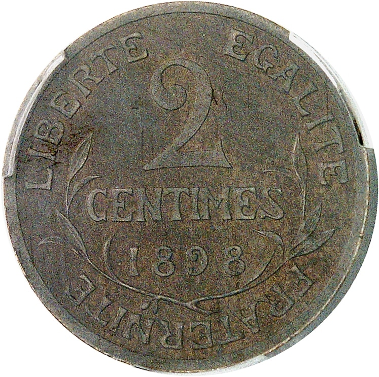 - IIIe République (1870-1940). Piéfort de 2 centimes Daniel-Dupuis, daté, Frappe spéciale mate (SP MATTE) 1898, Paris.
