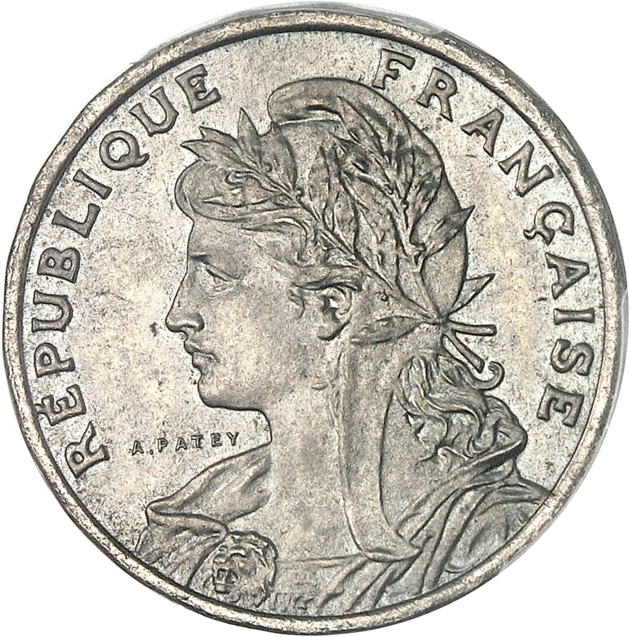 Av. RÉPUBLIQUE FRANÇAISE. Buste drapé et cuirassé de la République à gauche, avec bonnet de la Liberté orné de deux branches de laurier ; signature A. PATEY.