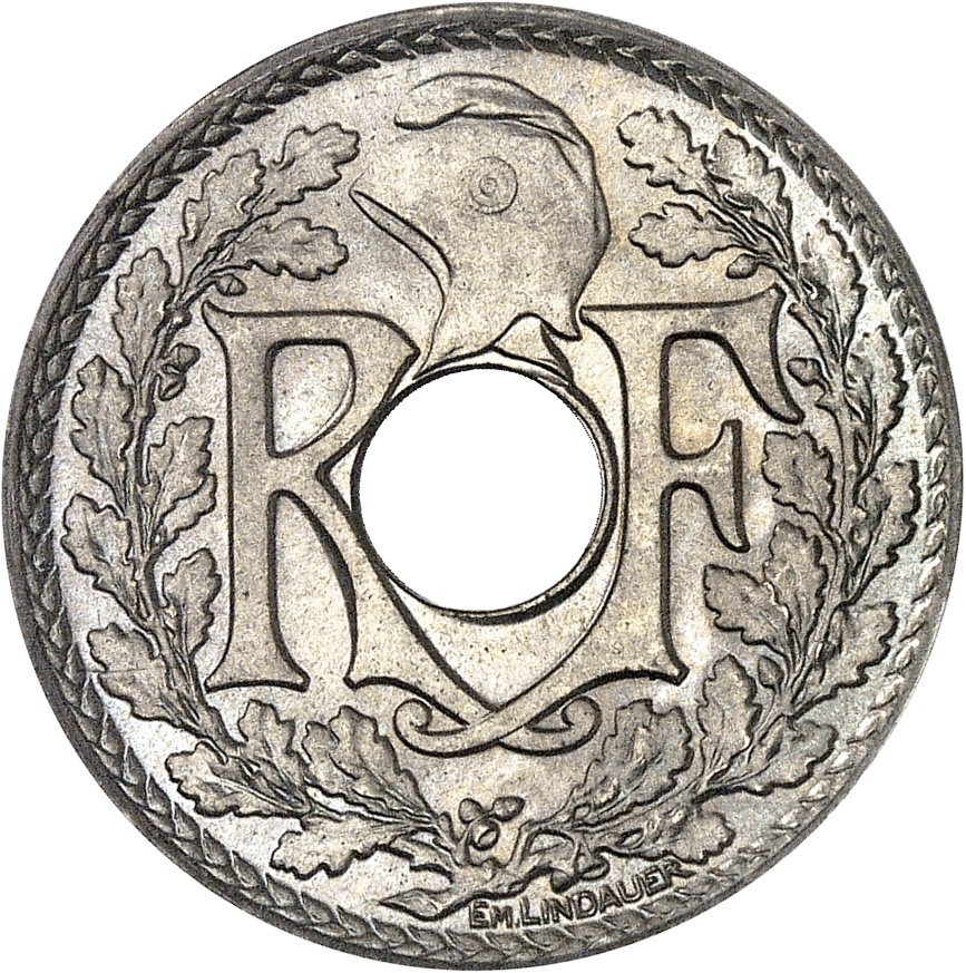Av. RF autour du trou central surmonté d’un bonnet phrygien, le tout dans une couronne formée de deux branches, signature EM. LINDAUER.