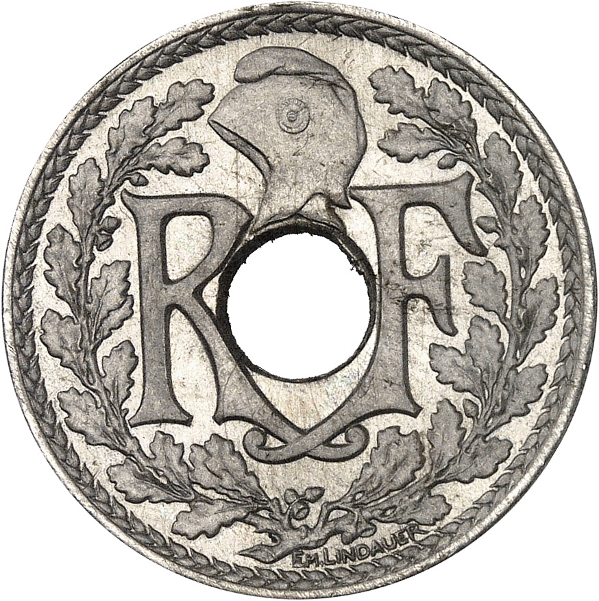 Av. RF autour du trou central surmonté d’un bonnet phrygien, le tout dans une couronne formée de deux branches ; signature EM. LINDAUER.