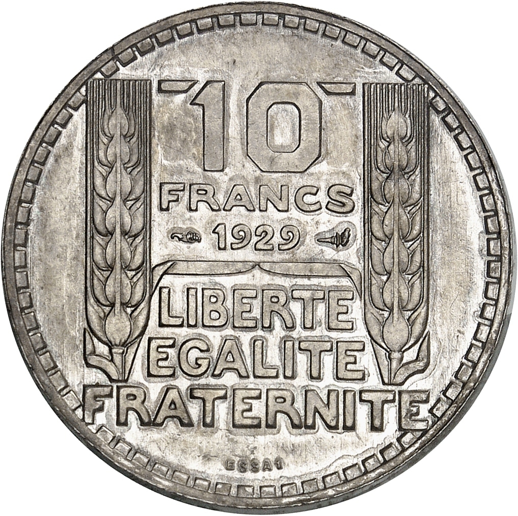 - IIIe République (1870-1940). Essai-piéfort de 10 francs Turin, Frappe spéciale (SP) 1929, Paris.