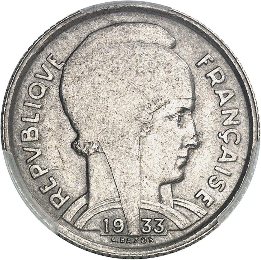 - IIIe République (1870-1940). 5 francs Bazor, flan splitté 1933, Paris.