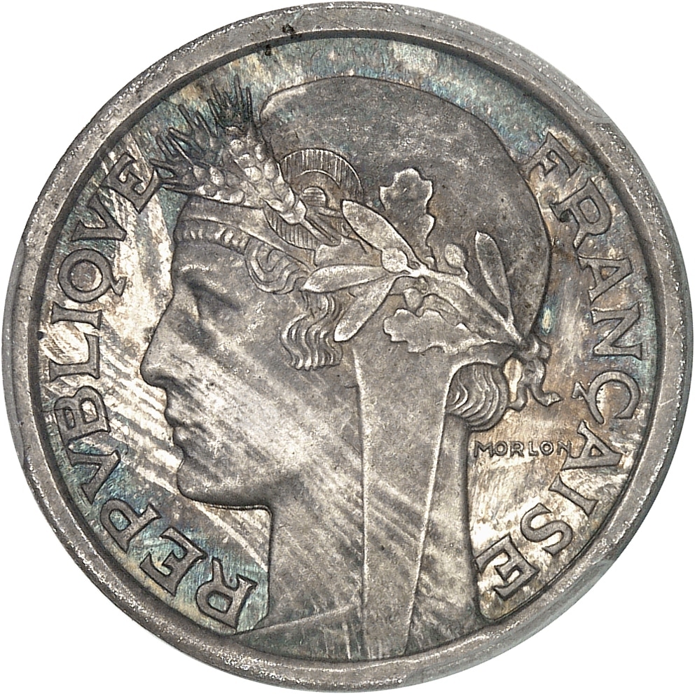 - IIIe République (1870-1940). Présérie de 2 francs Morlon, sans différents, en argent, Frappe spéciale (SP) 1931, Paris.