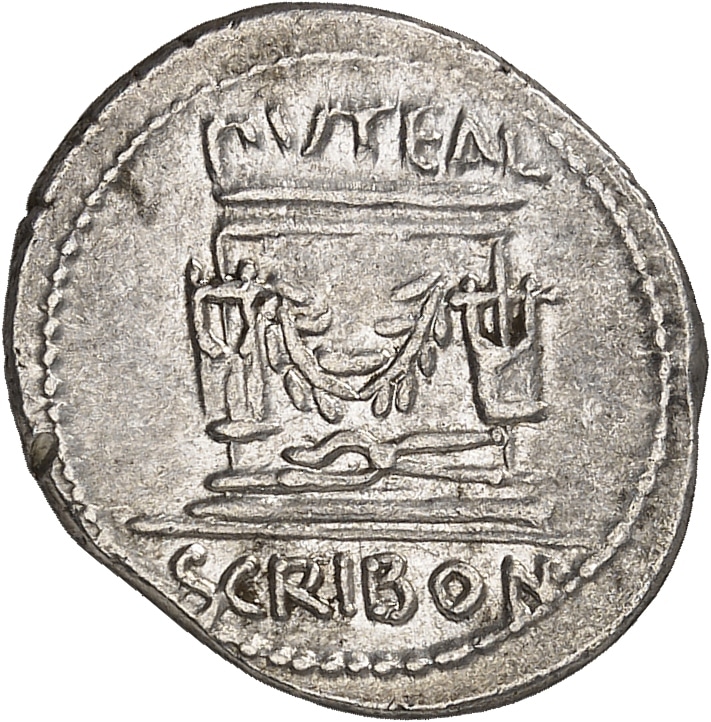 Le puits scribonien (Puteal Scribonianum) représenté au revers fut érigé par un ancêtre du monétaire et tient son nom de la gens Scribonia
