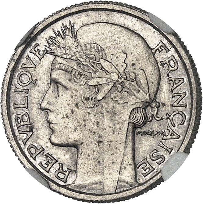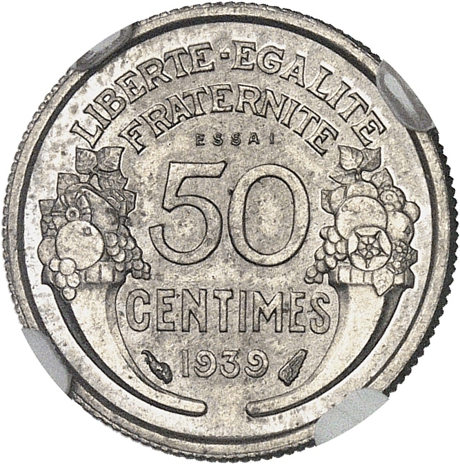 - IIIe République (1870-1940). Essai de 50 centimes Morlon en nickel 1939, Paris.