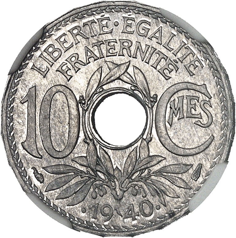 - État Français (1940-1944). Essai de 10 centimes Lindauer, date avec points, en aluminium 1940, Paris.