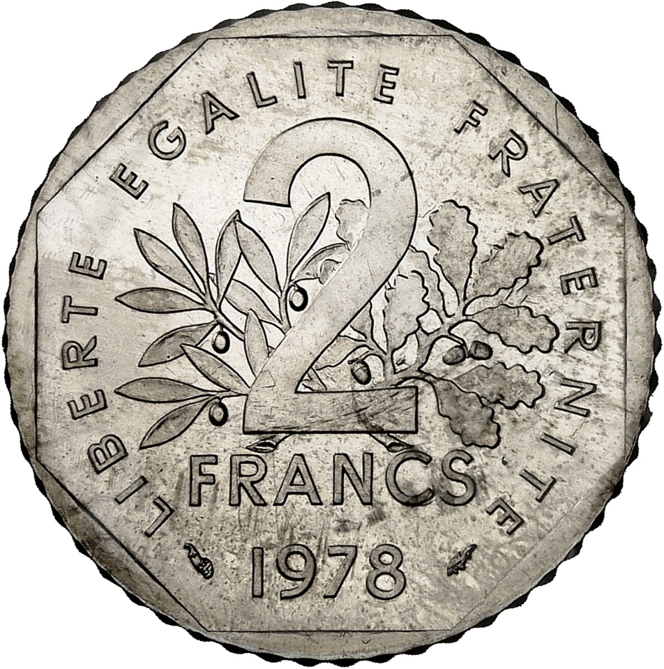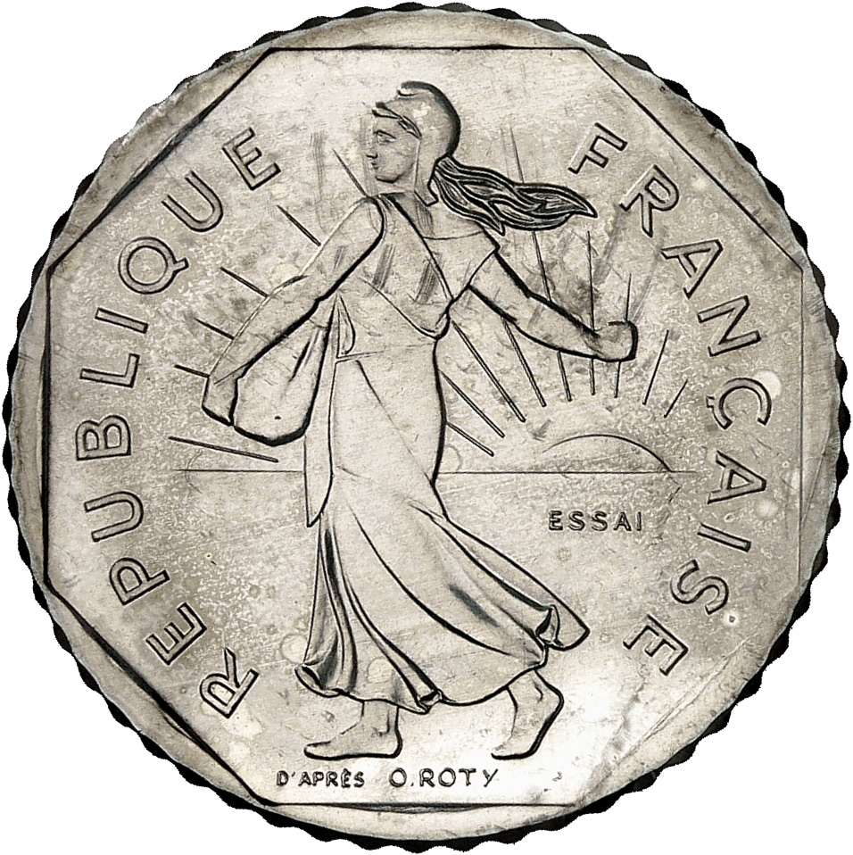 - Ve République (1958 à nos jours). Essai de 2 francs Semeuse en argent 1978, Pessac.