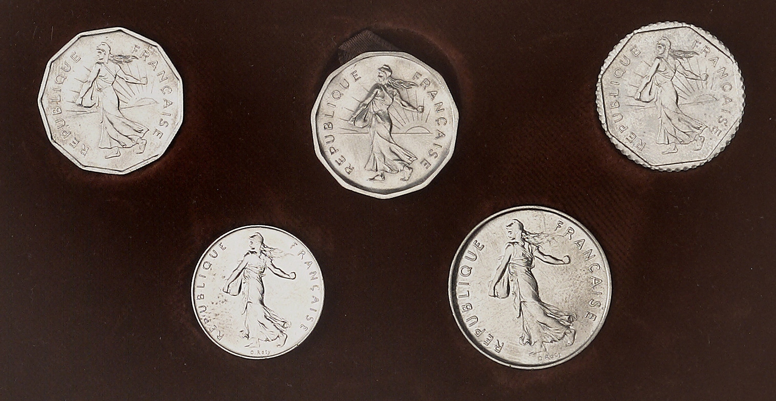 - Ve République (1958 à nos jours). Coffret de la Commission d’étude de la pièce de 2 francs Semeuse 1977, Pessac.
