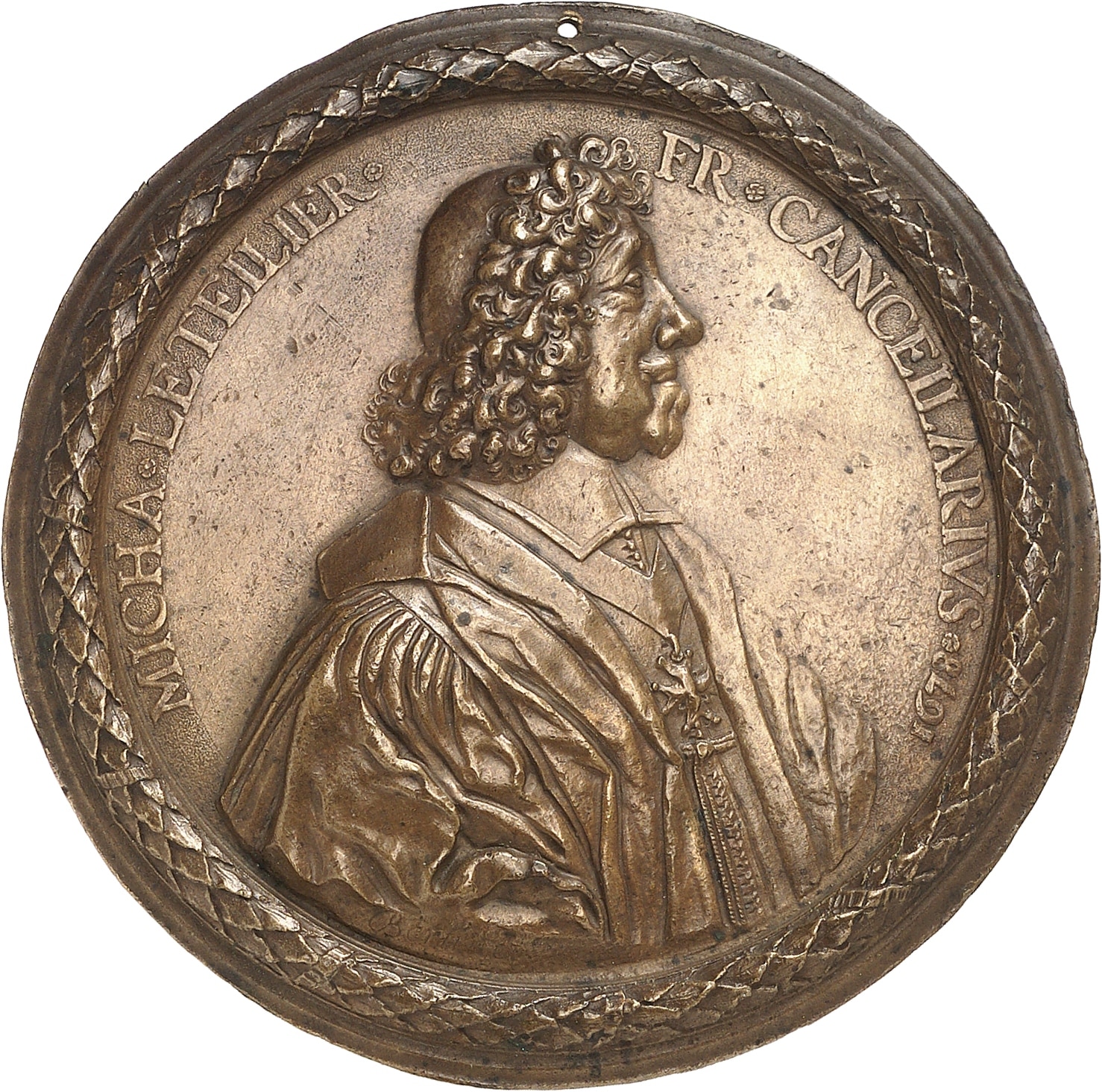 Av. MICHA* LETELLIER* - FR* CANCELLARIVS* / 1678 (légende traitée avec un fond en pointillés). Buste à droite du chancelier Michel Le Tellier, à mi-corps, avec l’ordre du Saint-Esprit ; au-dessous signature BERTINET.