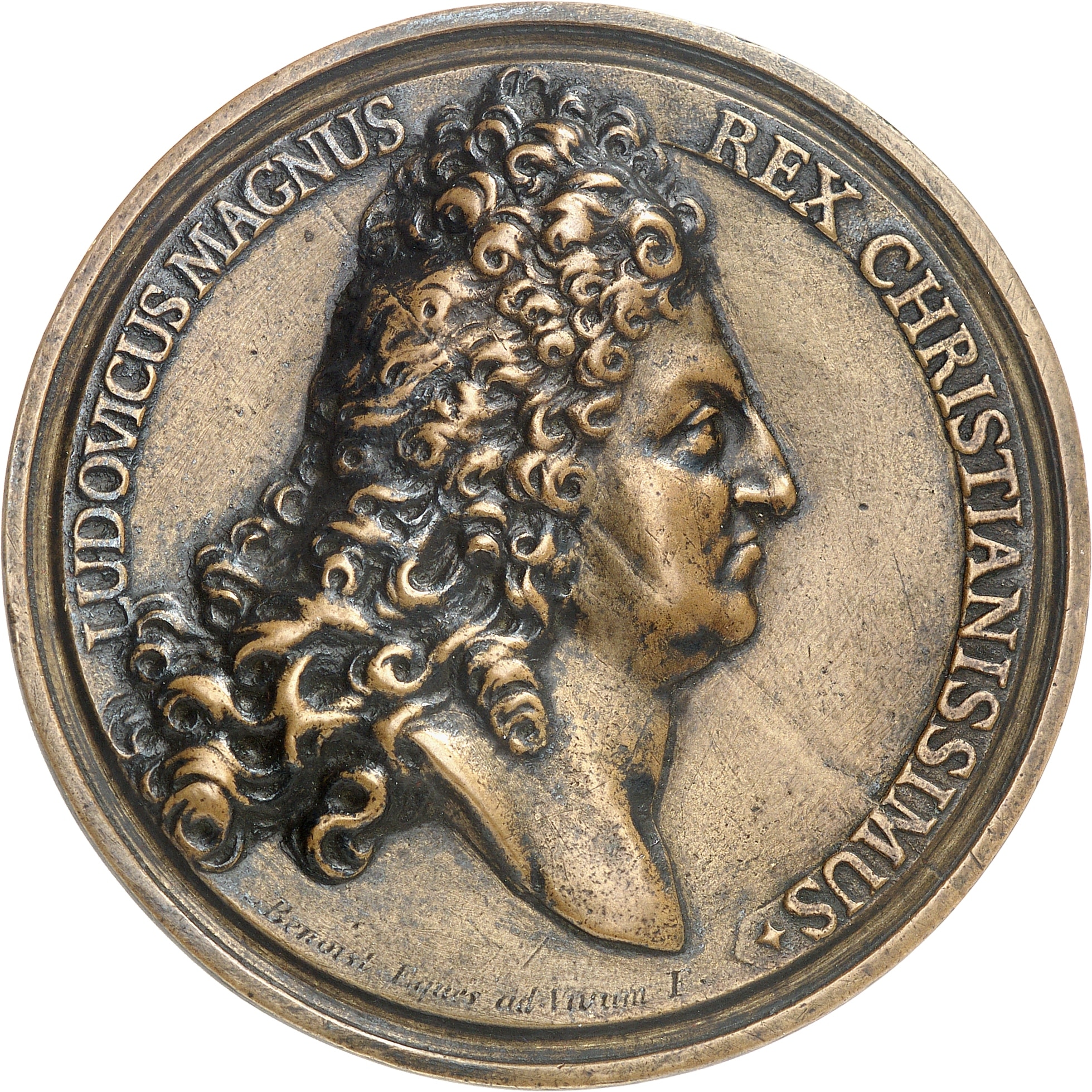 Av. LUDOVICUS MAGNUS - REX. CHRISTIANISSIMUS+. Buste à droite de Louis XIV portant la grande perruque ; au-dessous signature Benoist Eques ad vivum F.