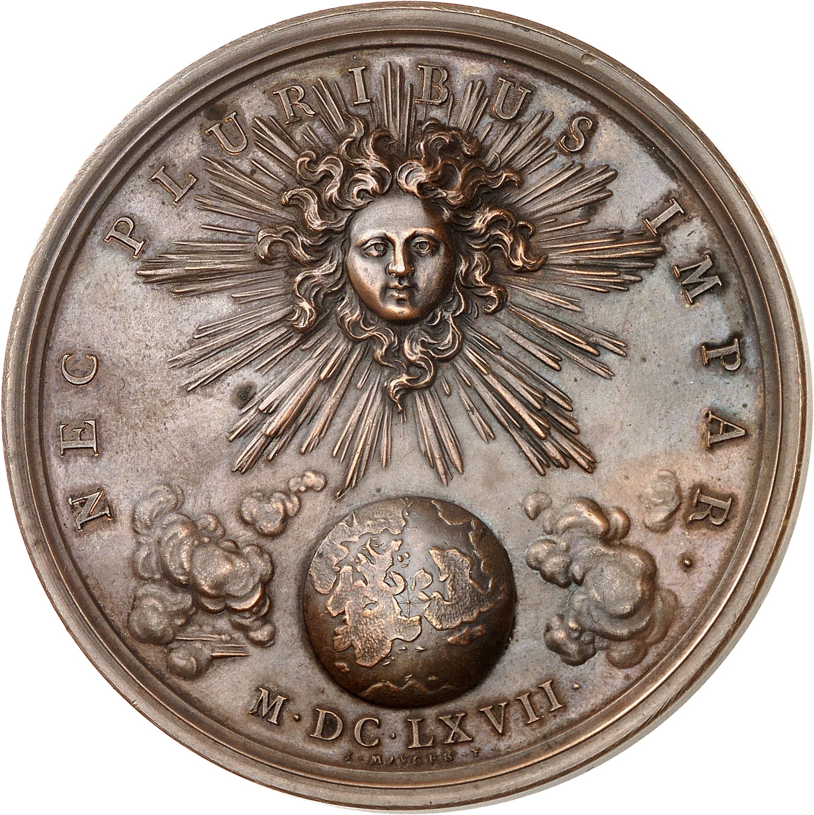 - FRANCE / ROYAL Louis XIV (1643-1715). Médaille, Louis XIV et sa devise “À nul autre pareil !”, par Roussel et J. Mauger 1667 (frappe postérieure), Paris.
