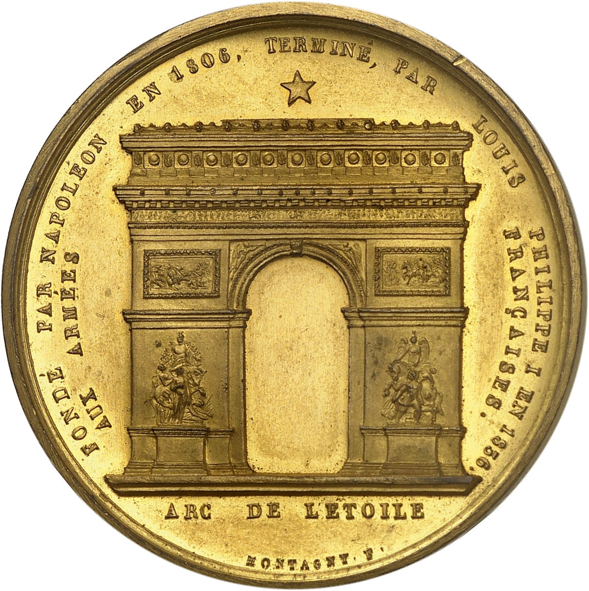 - Louis-Philippe Ier (1830-1848). Médaille, inauguration de l’Arc de triomphe de l’Étoile le 29 juillet 1836, par Montagny 1836 (1845-1860), Paris.