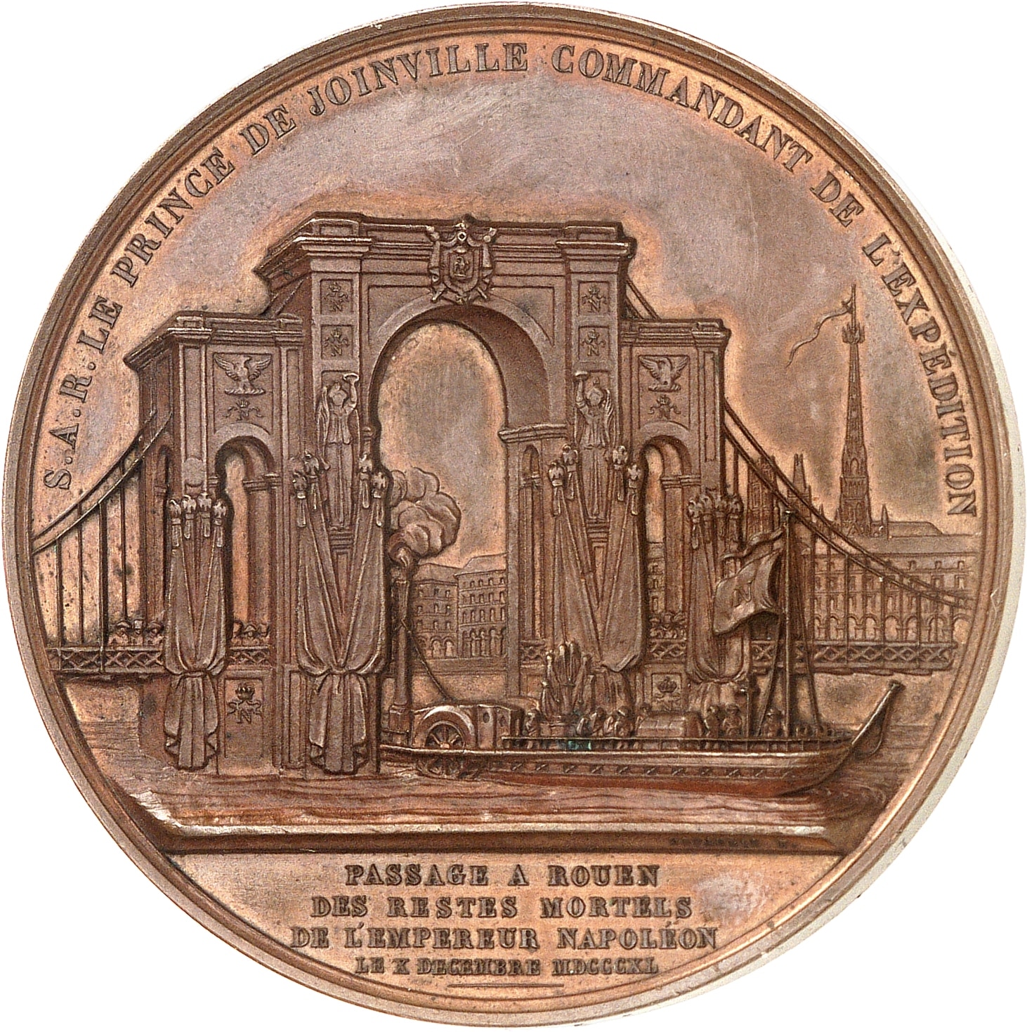 - Louis-Philippe Ier (1830-1848). Médaille, Retour des cendres de Napoléon Ier, passage à Rouen de l’expédition du Duc de Joinville, par Depaulis 1840 (1842-1845), Paris.