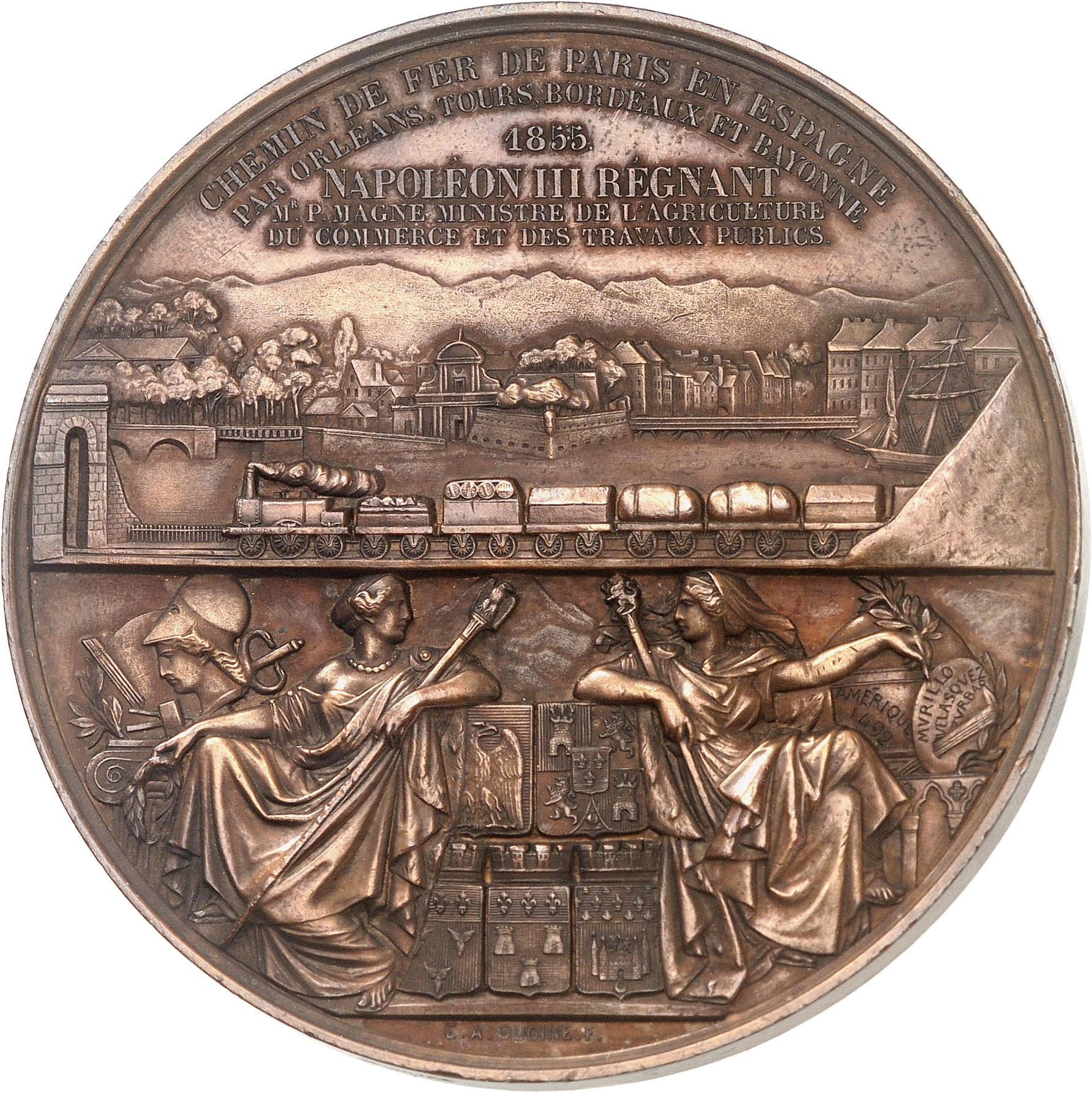 - Second Empire / Napoléon III (1852-1870). Médaille, Chemin de fer de Paris en Espagne, par A. Bovy et E. A. Oudiné 1855, Paris.