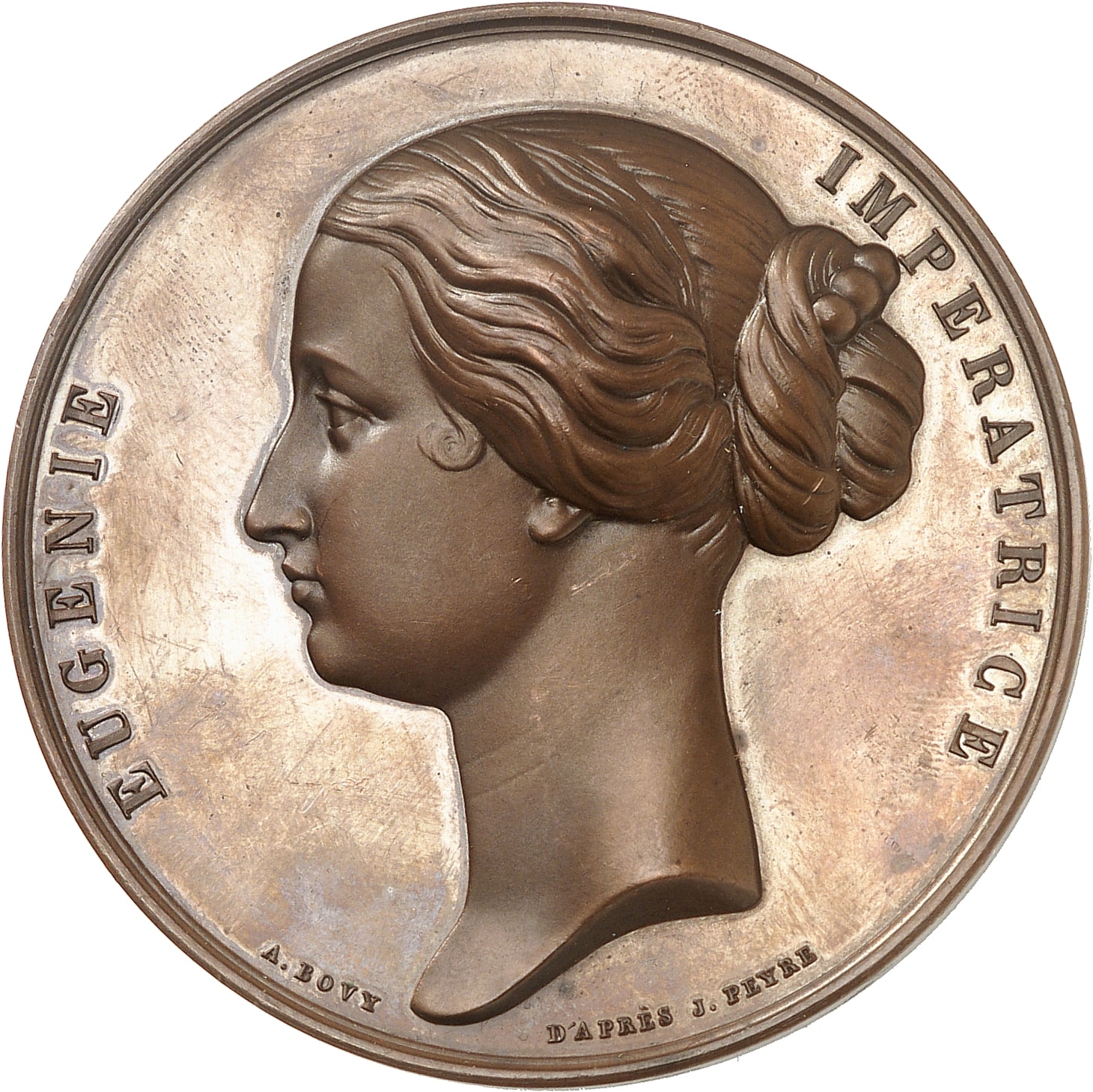 - Second Empire / Napoléon III (1852-1870). Médaille, visite de l'Impératrice Eugénie et du Prince impérial à la Banque de France, par A. Bovy 1866, Paris.