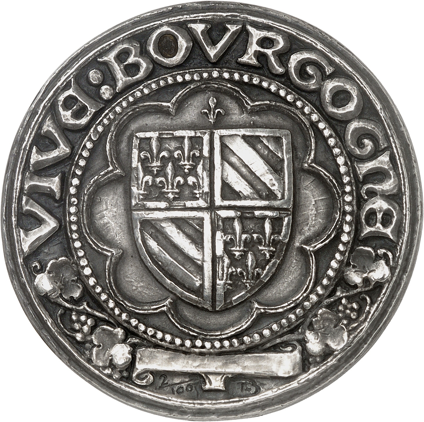 Rv. VIVE: BOVRGOGNE. Armes de Bourgogne dans un polylobe, signature hB et tirage 2/100.