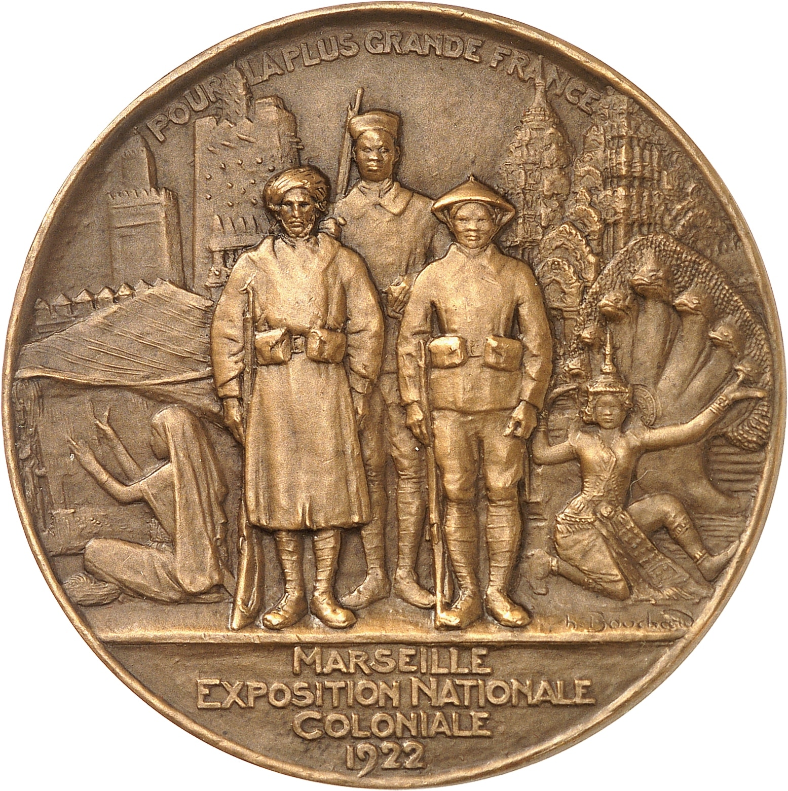 - IIIe République (1870-1940). Médaille, l’Exposition coloniale de Marseille, par H. Bouchard 1922, Paris (Janvier et Berchot).