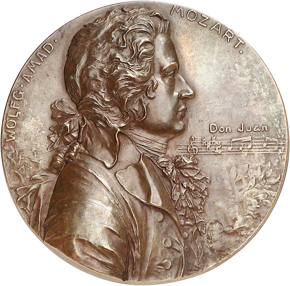 Av. WOLFG. AMAD. - MOZART. Buste de Mozart à droite ; au-devant une partition avec Don Juan.