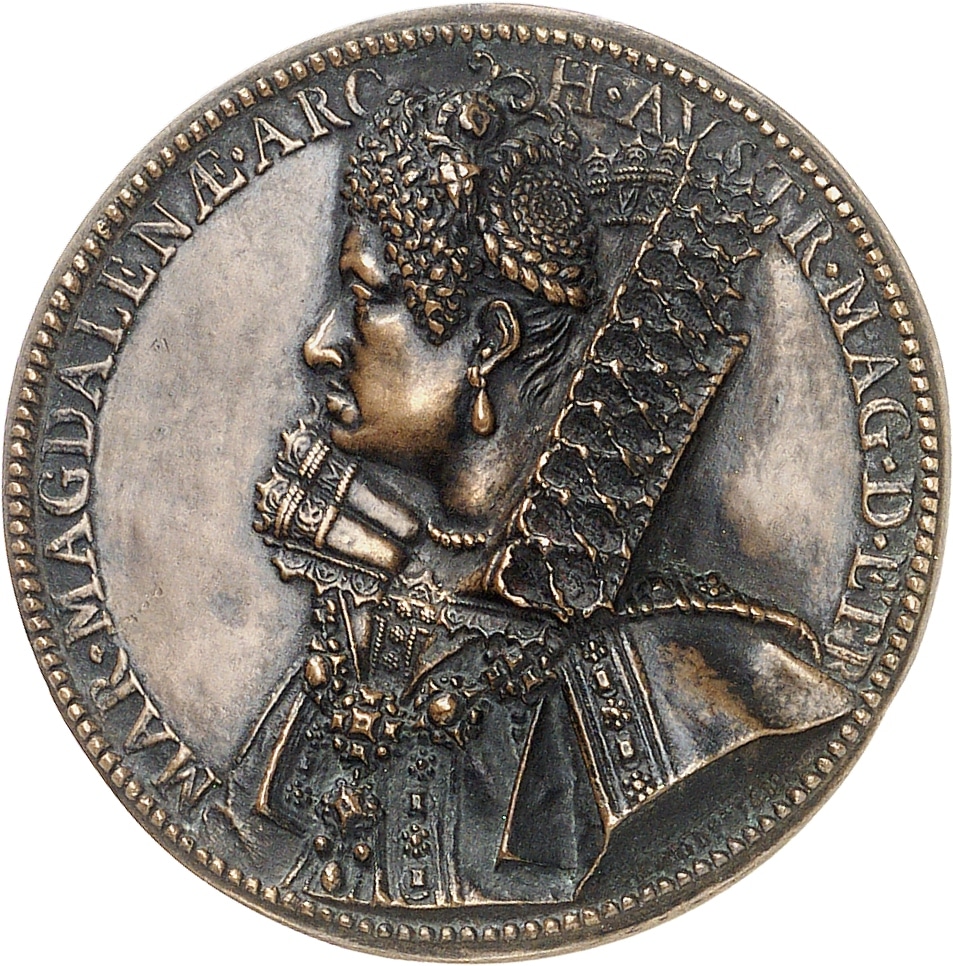 Rv. MAR. MAGDALENÆ. ARC - H. AVSTR. MAG. D. ETR. Buste à gauche de Marie Madeleine de Médicis, portant une large fraise, au-dessous GDP 1613.