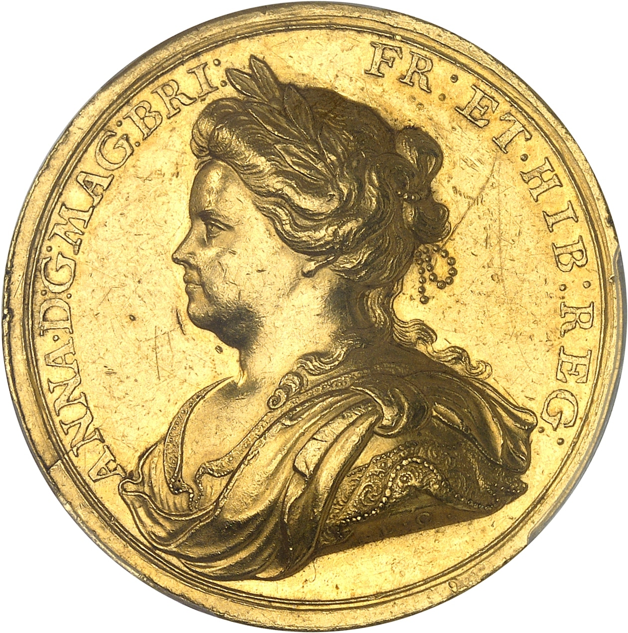 Av. ANNA. D: G: MAG: BRIT: - FR: ET. HIB: REG:. Buste lauré, drapé et cuirassé à gauche ; signature I. C. au-dessous.