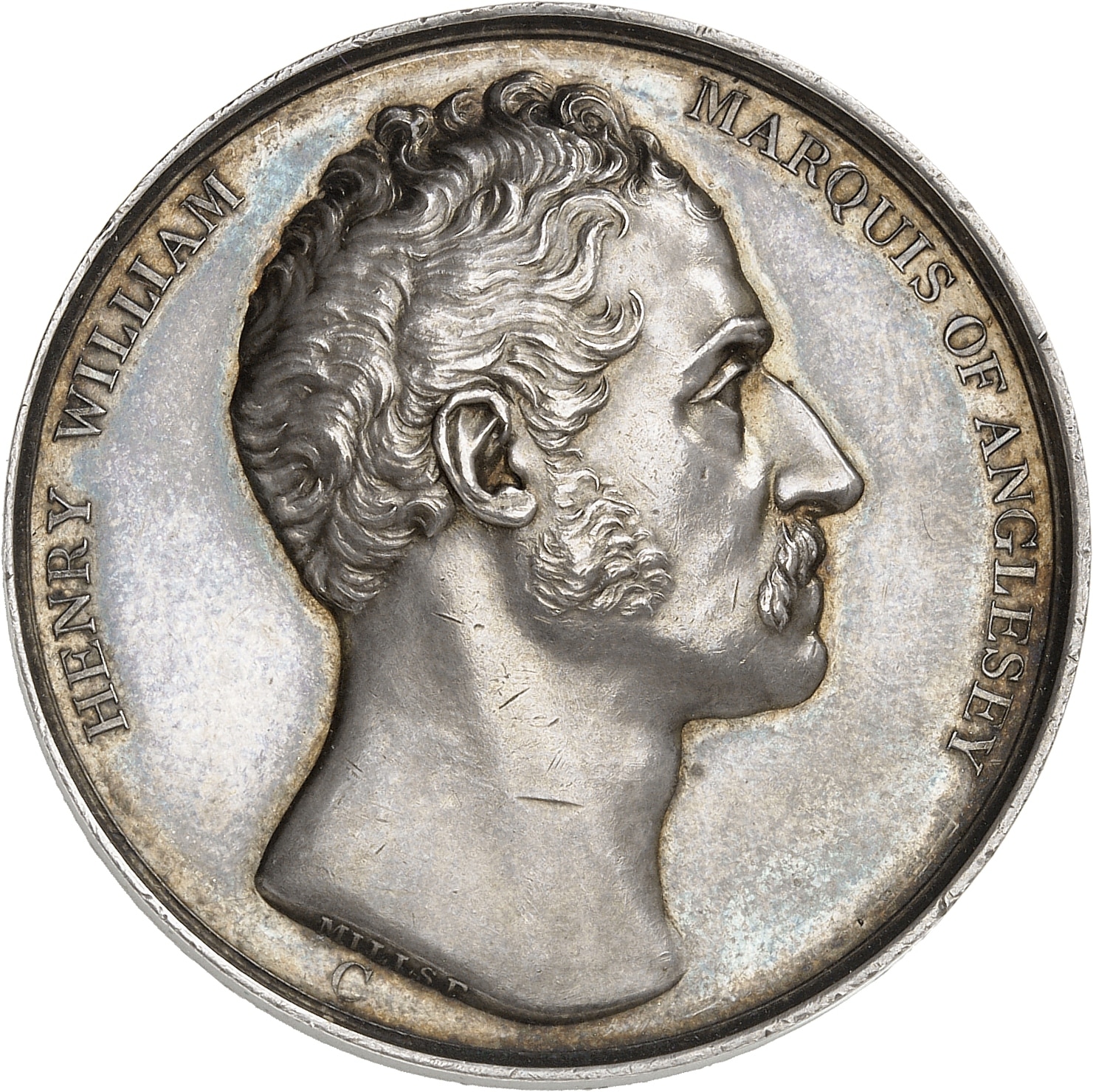 Av. HENRY WILLIAM MARQUIS OF ANGLESEY. Tête nue à droite ; signature MILLS F sur la tranche du cou et C au-dessous.