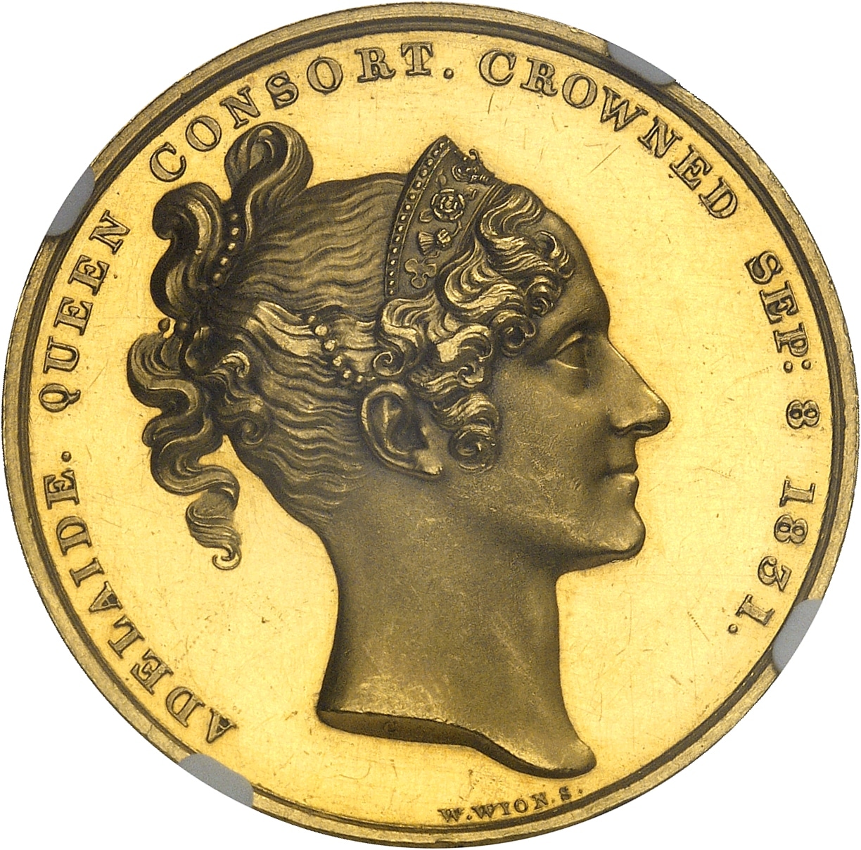 Rv. ADELAIDE. QUEEN CONSORT. CROWNED SEP: 8 1831. Tête diadémée à droite d’Adélaïde, C sur la tranche du cou et signature W. WYON. S.