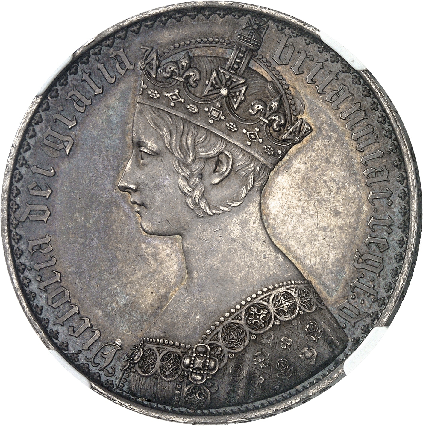 - UNITED KINGDOM Victoria (1837-1901). Crown ou couronne gothique, Flan bruni (PROOF) 1847, Londres.