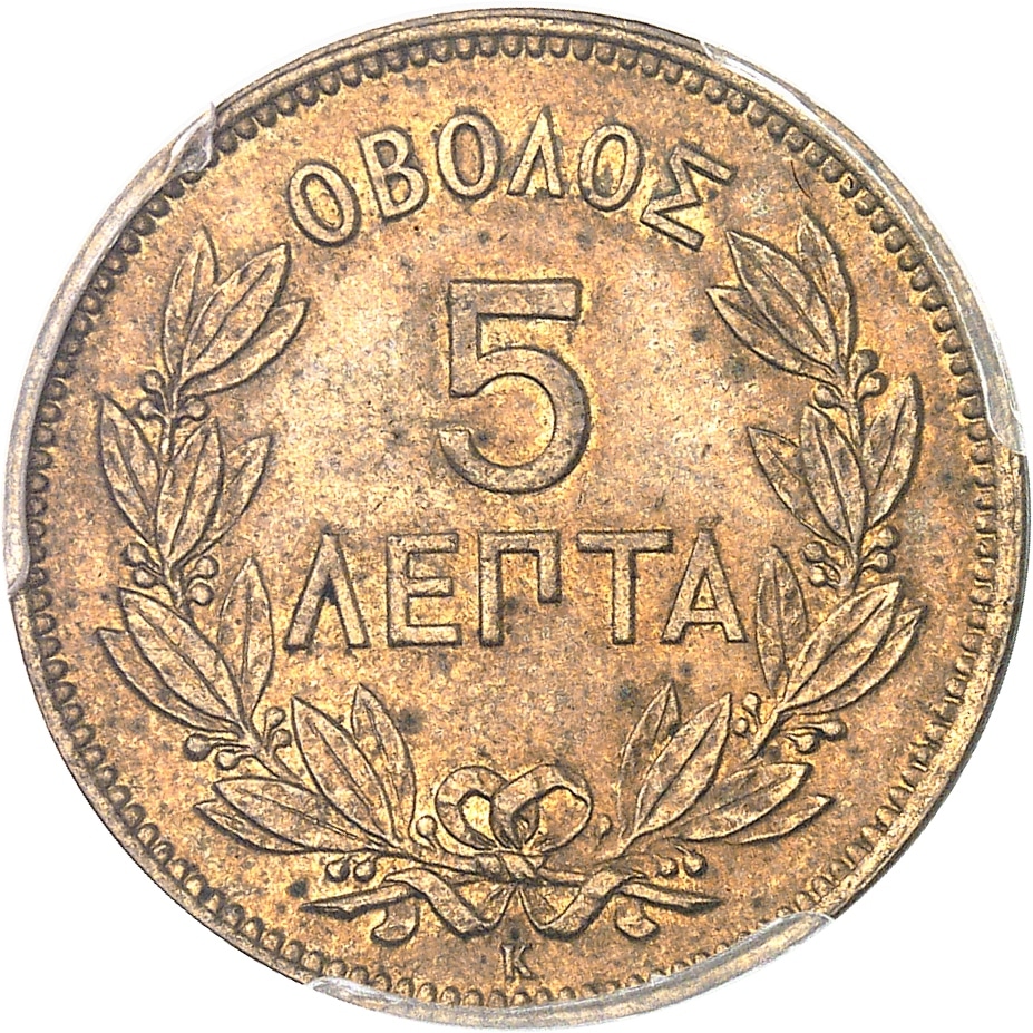 - GREECE Georges Ier (1863-1913). 5 lepta 1878, K, Bordeaux.