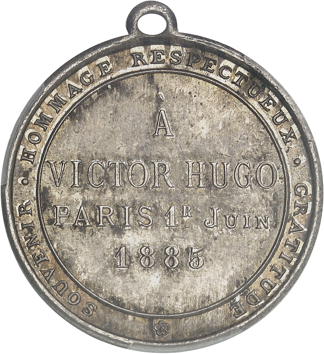 Victor Hugo était admiré des Haïtiens, pour ses positions abolitionnistes aux côtés de John Brown. Les Haïtiens de Paris lui rendirent hommage à son décès. Le coin d’avers de cette médaille fut par la suite utilisé pour frapper des jetons de nécessité d’une gourde par le Général Hippolyte vers 1889