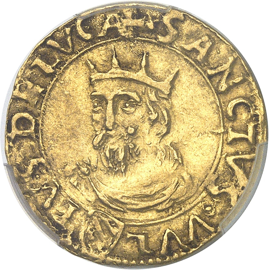 Rv. + .SANCTVS. VVL (écu) TVS. DE LVCA. Buste de Saint Vultus de trois-quarts à gauche, avec une couronne radiée.