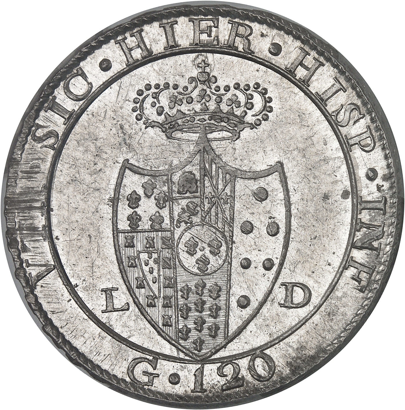 Rv. VTR. SIC. HIER. HISP. INF. Écu couronné accosté de L - D ; à l'exergue : G.120.