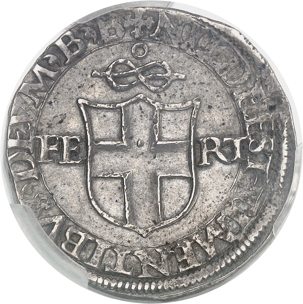 Rv. NILDEEST. TIMENTIBVS. DEVM. (atelier). Écu de Savoie accosté de FE - RT, sous un nœud de Savoie surmonté d’un annelet.