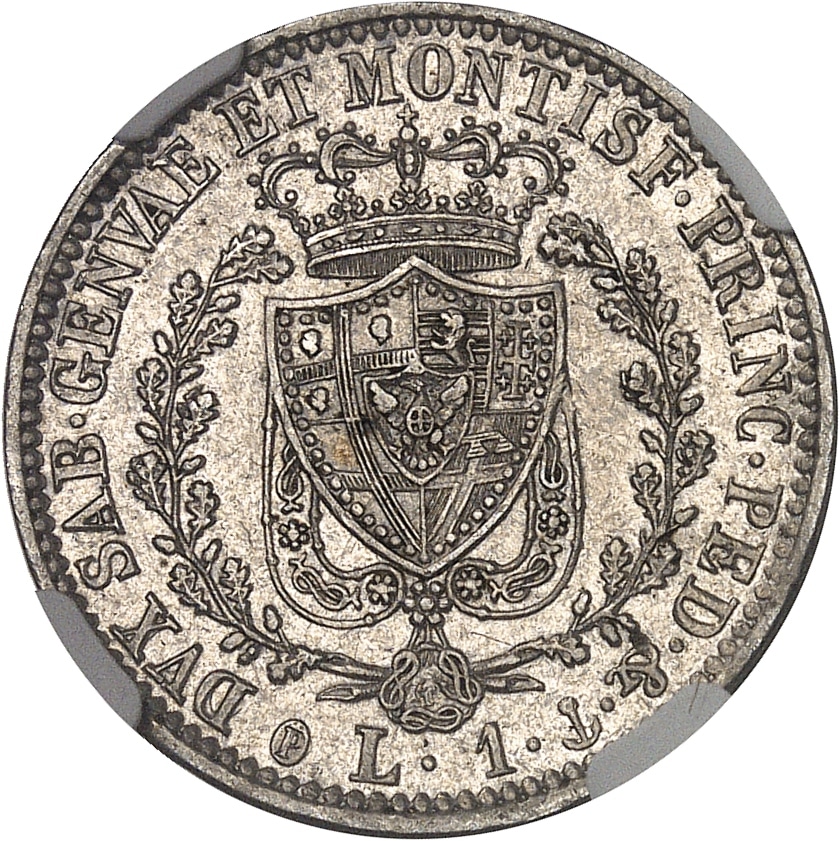 Rv. DVX. SAB. GENVAE ET MONTISF. PRINC. PED. &. Écu couronné, au-dessous (différent) L. 1 (atelier).