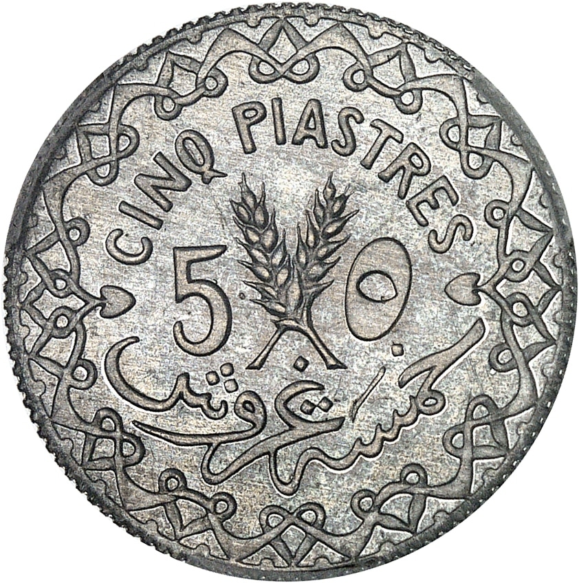 - LEBANON République libanaise (Grand Liban - 1926-1943). Épreuve hybride (sans ESSAI) en aluminium de 5 piastres, revers de la Syrie, Frappe spéciale (SP) ND (1933, 1936 ou 1940 ?), Paris.