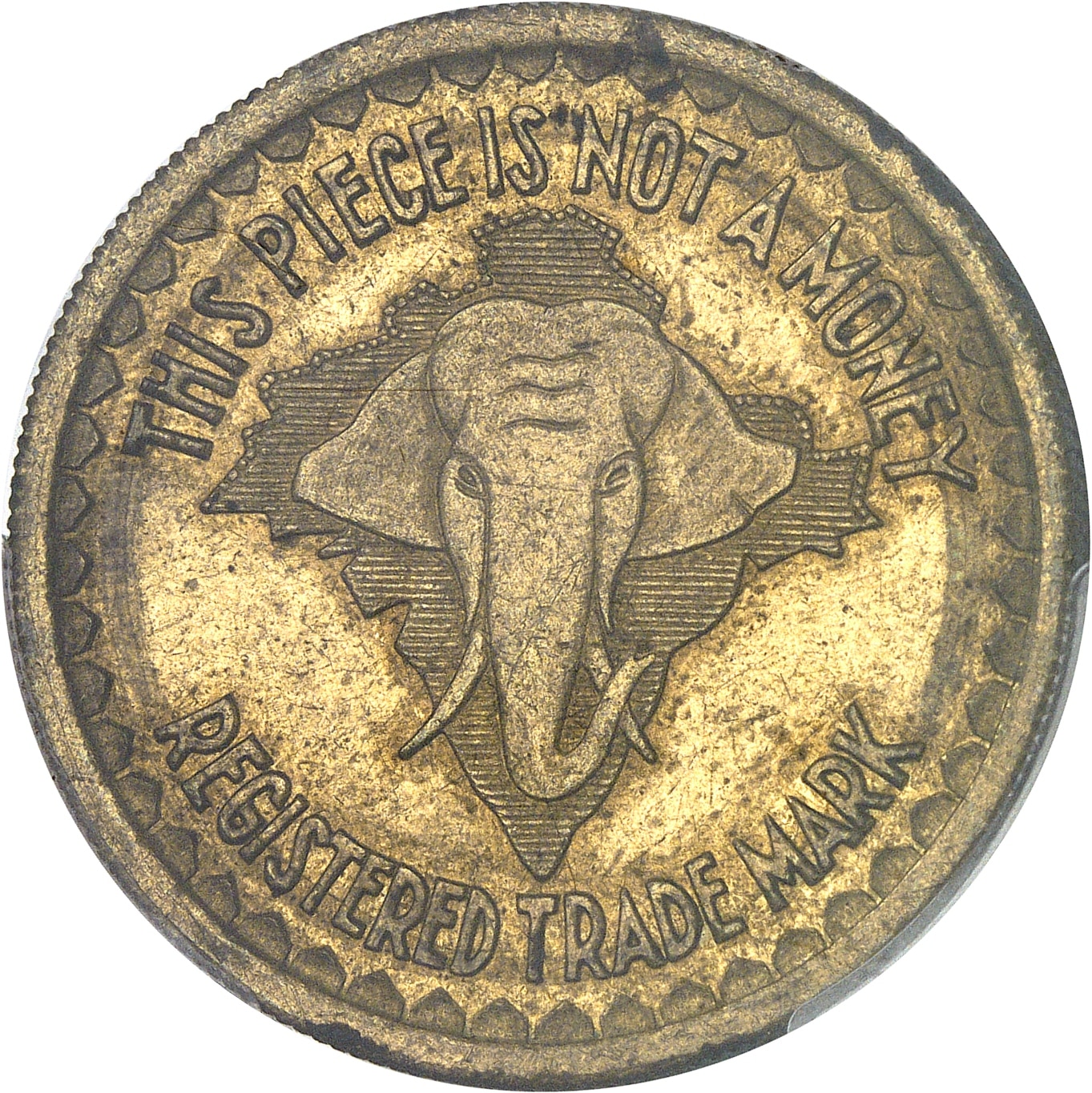 Rv. THIS PIECE IS NOT A MONEY / REGISTERED TRADE MARK. Au centre, une tête d’éléphant de face.