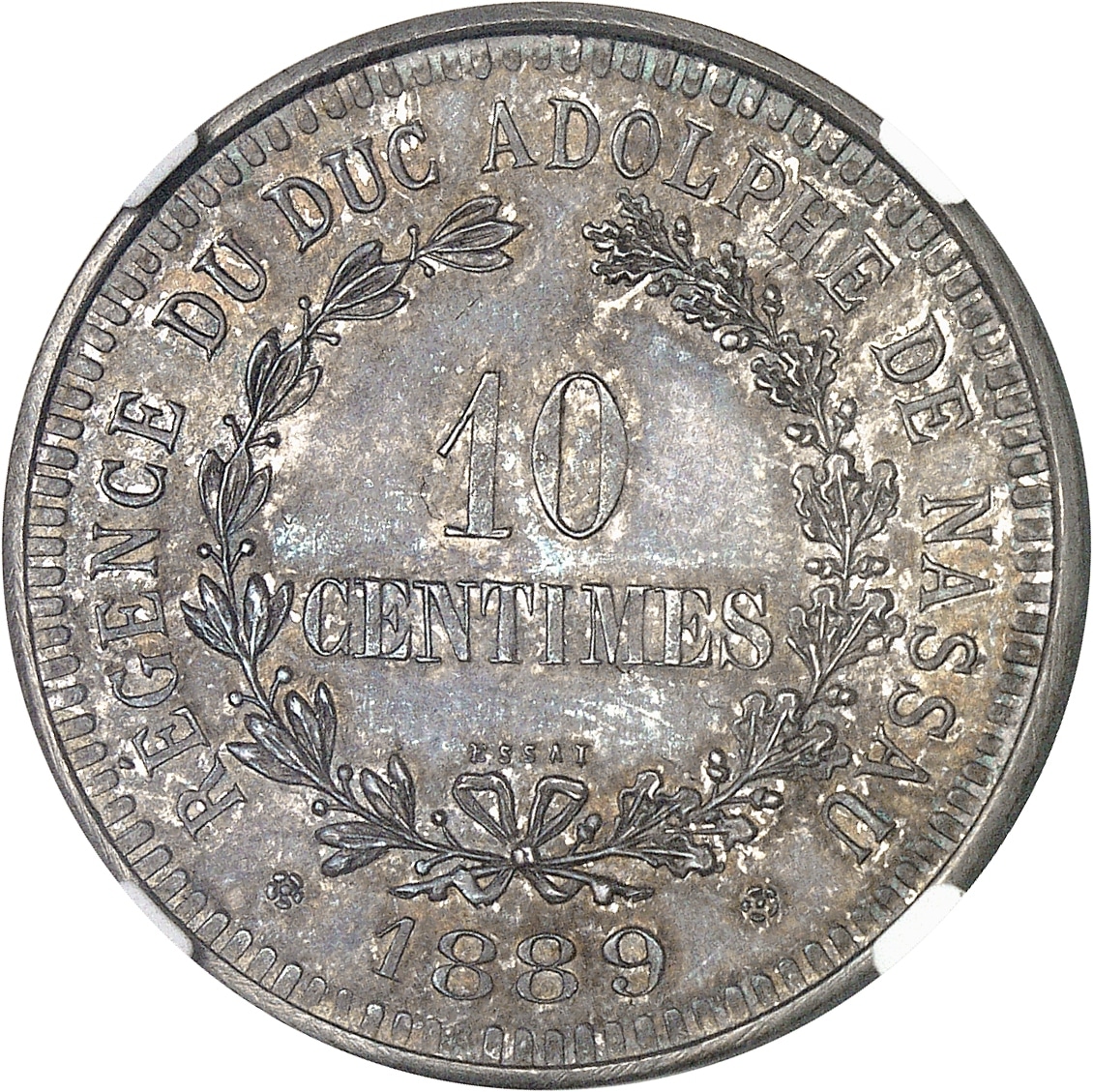 - Adolphe de Nassau, régent (1889-1890). Essai de 10 centimes 1889, Bruxelles.